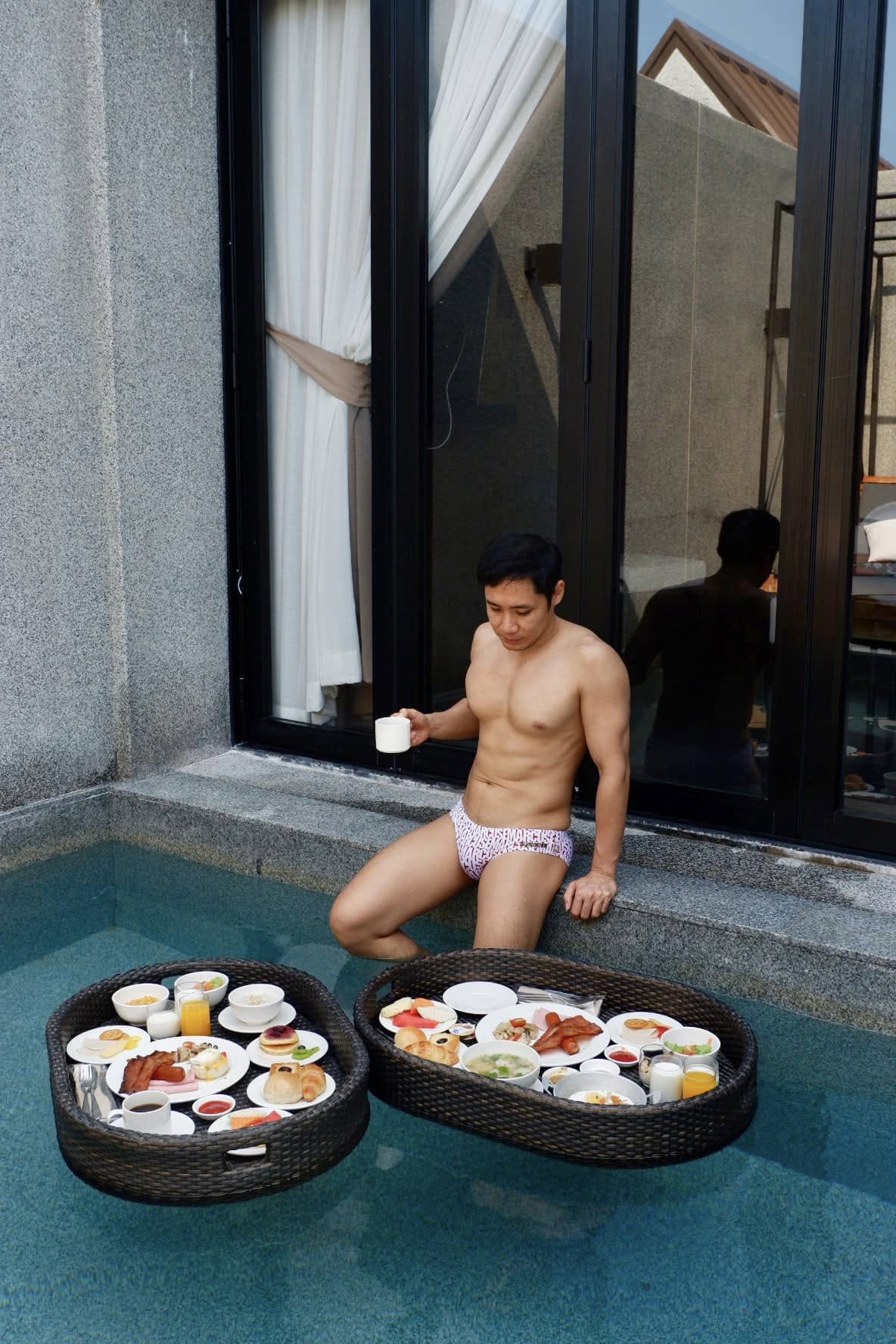 - Breakfast เลือกได้จะกินที่ Lounge ที่ห้องอาหาร หรือเสิร์ฟลอยน้ำที่ห้อง ซึ่งได้คนละถาด มีให้เลือก2สไตล์ ไทย/ตะวันตก