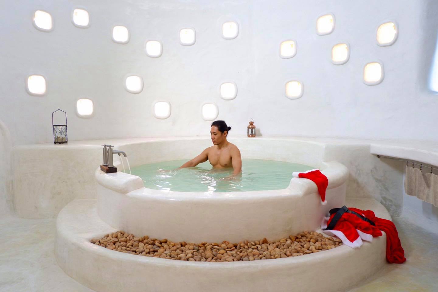 ห้อง November เป็นวิลล่าหลังใหญ่พักได้ 2 คน มีห้องนอน ห้องนั่งเล่น ดาดฟ้า และห้องน้ำสุดอลังการ พร้อมอ่างน้ำใหญ่มากกกกกก (เปิดน้ำ 2 ชั่วโมงถึงจะเต็ม) ของใช้ในห้องครบ และยังใหม่ใช้งานได้ดี ถ่ายรูปกับอ่างน้ำห้องนี้แนะนำถ่ายกลางวันนะ สว่างแสงฟุ้งผิวสวยมาก นี่กะจะตีฟองนะ แต่เห็นอ่างแล้วไม่ไหว เปลืองเกิน แต่ถ้าใครต้องการเล่นฟอง นางมีขายที่ Lobby นะ