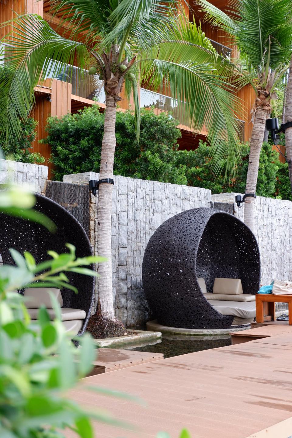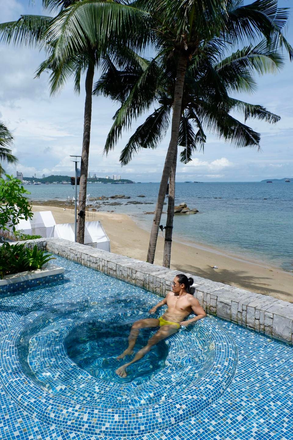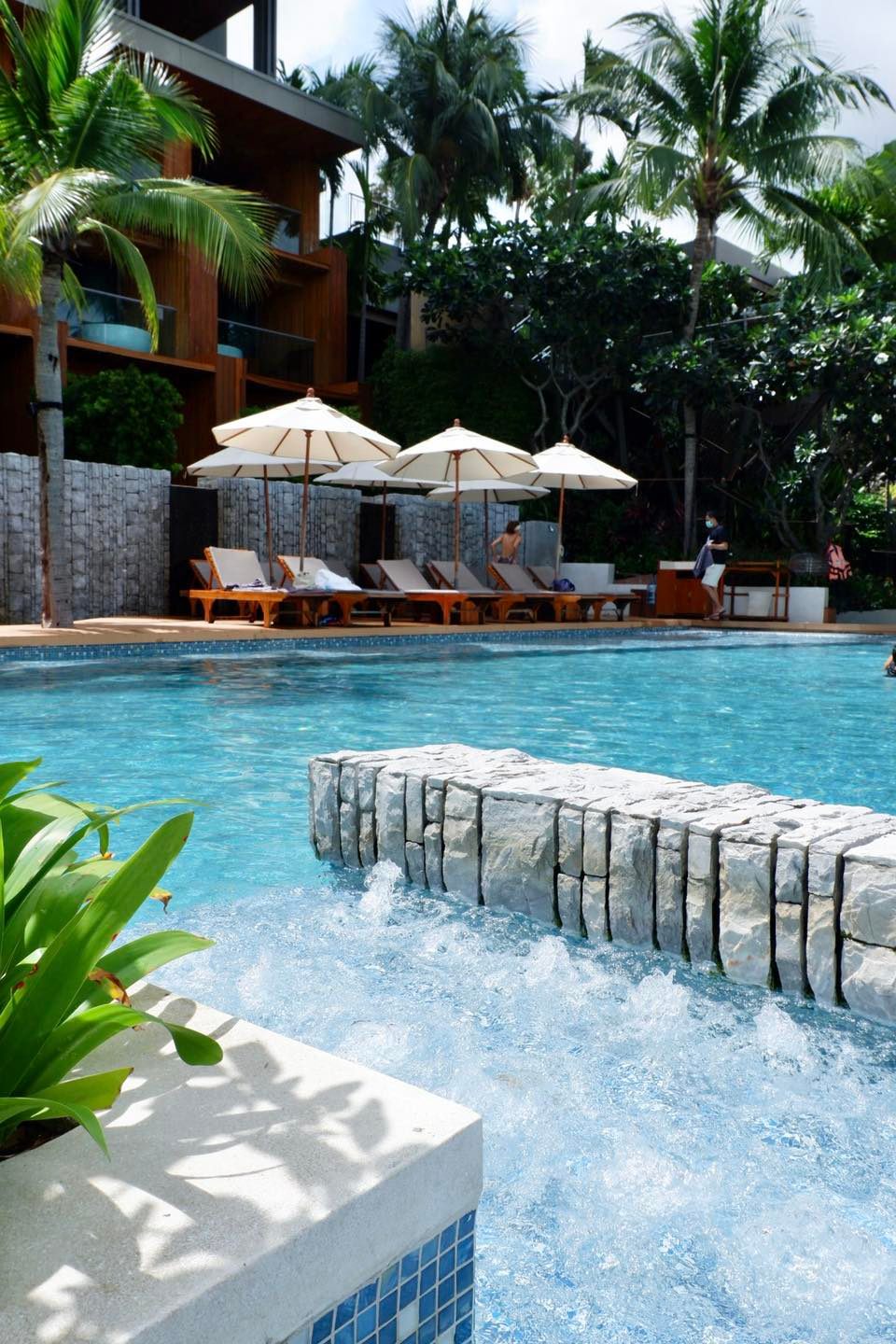 สระว่ายน้ำมี 2 สระ สระใหญ่ตรงกลาง และริมชายหาด ส่วนพื้นที่ริมทะเลเองก็จัดแต่งได้สวยงามบรรยากาศดี ทะเลจะมีโขดหินเยอะ ดูแปลกตา เย็นๆไปเดินเล่นได้