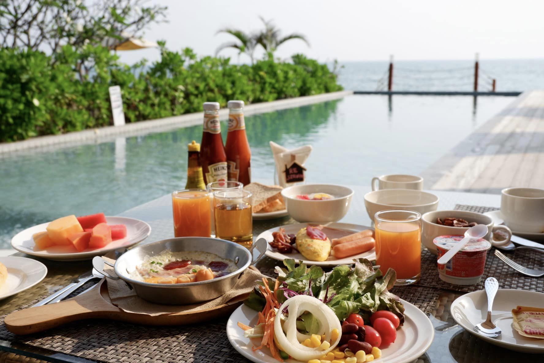 BREAKFAST ไม่ได้มีมากมายแต่ครบ และสดใหม่ ทานได้ชิวๆ ไข่กระทะน่ากินมาก อาหารเข้านิก็ให้จัดเสิร์ฟที่ห้อง หรือลอยน้ำก็ได้เช่นกัน