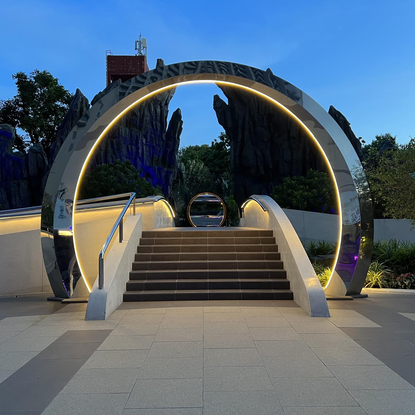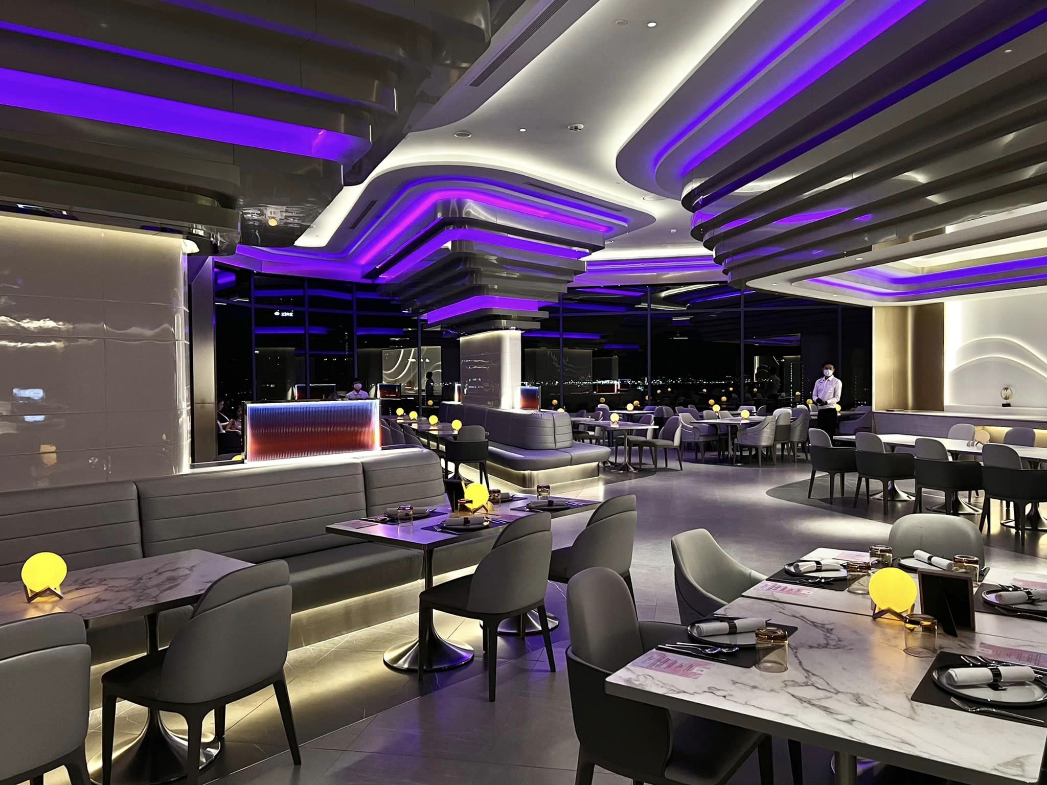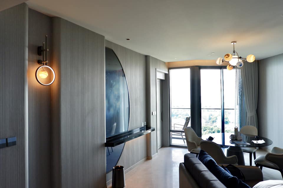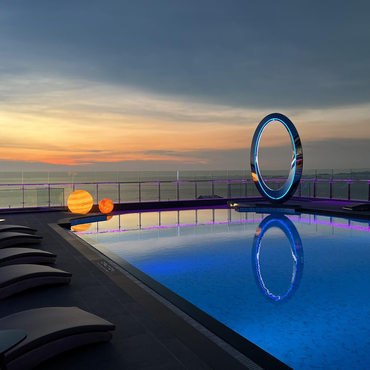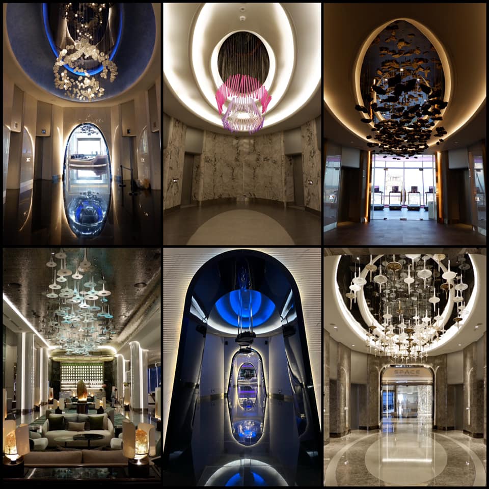 สีแสงแผงระย้าพาใจลอย กับจุดรอลิฟท์ทุกชั้น ส่วนโดยรอบโรงแรมจะสวยมากช่วงเย็นจนมืด เอยไฟเอยใจ ก็มันอวกาศไง เลิศ!