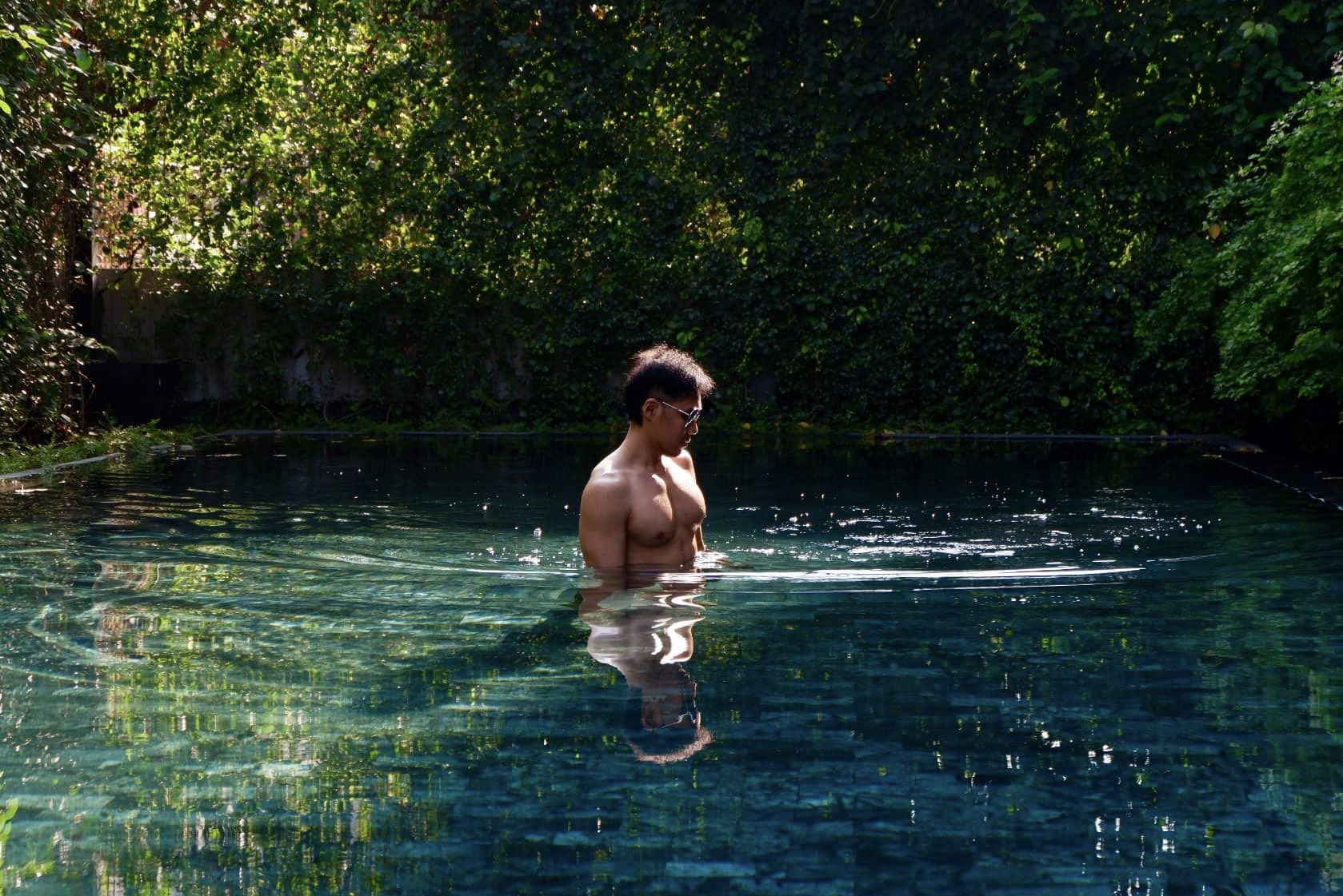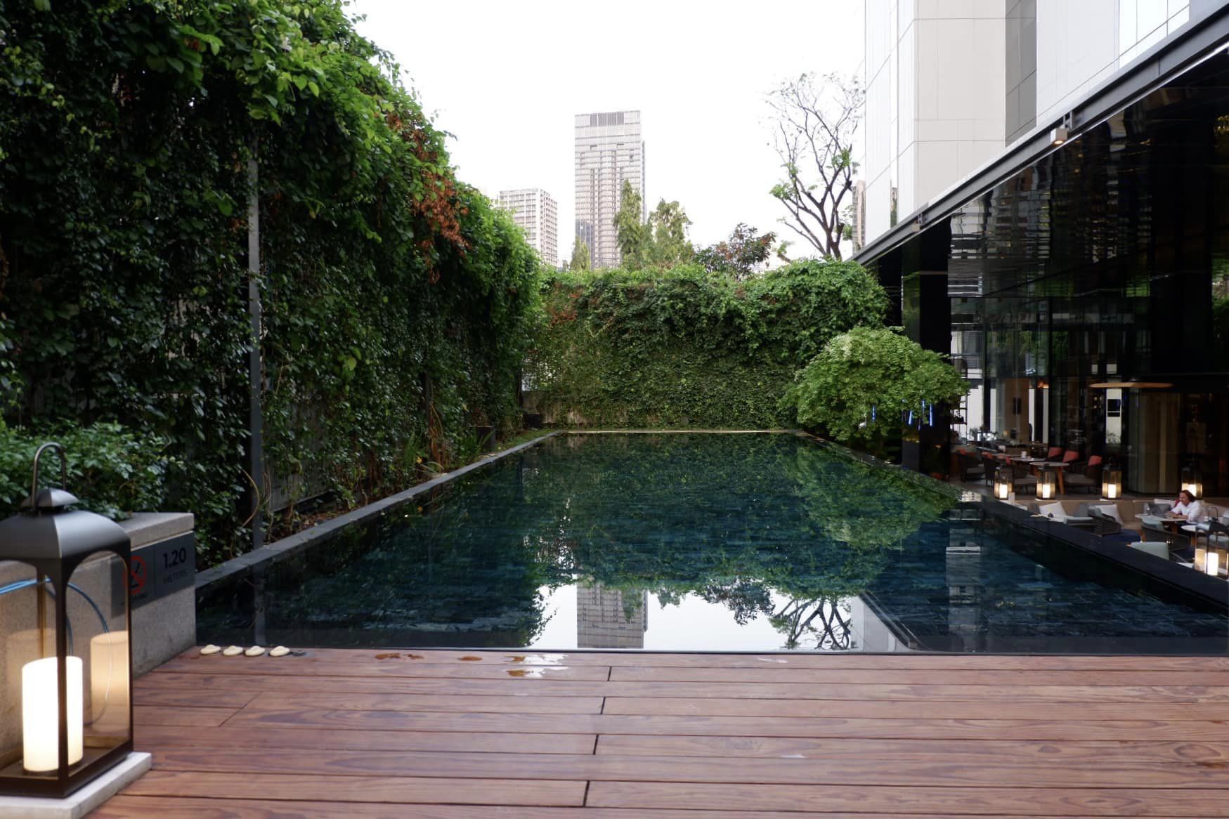 ใหญ่นะเมื่อเทียบกับขนาดโรงแรม (ความลึกแค่อกทั้งสระ) ได้รูปถูกใจมาก สระสีดำกับสวนเขียวๆ มีความบ่อน้ำในป่า แนะนำให้ถ่ายเช้าๆ แสงรอดกำแพงไม้เลื้อย สวยมาก