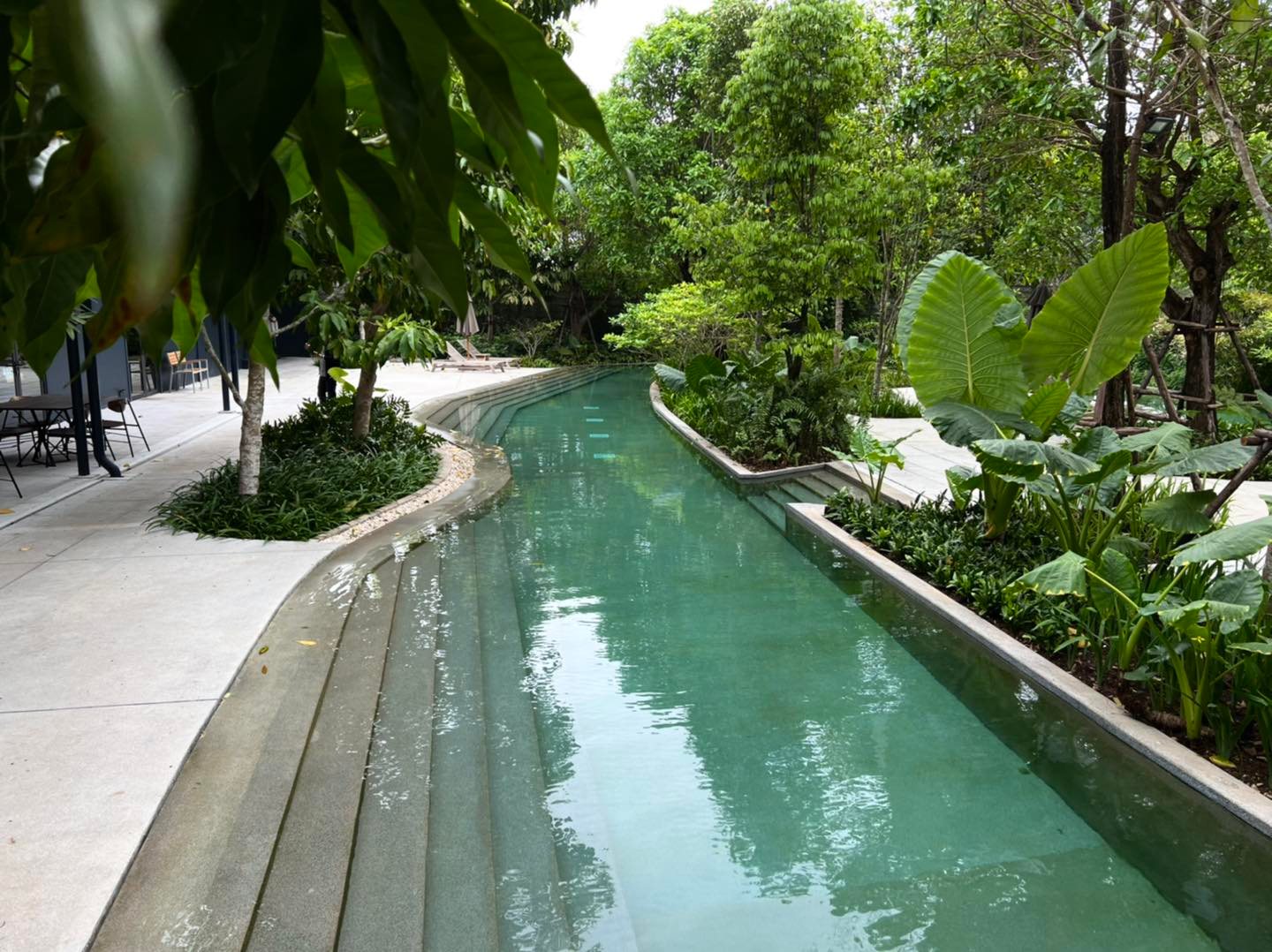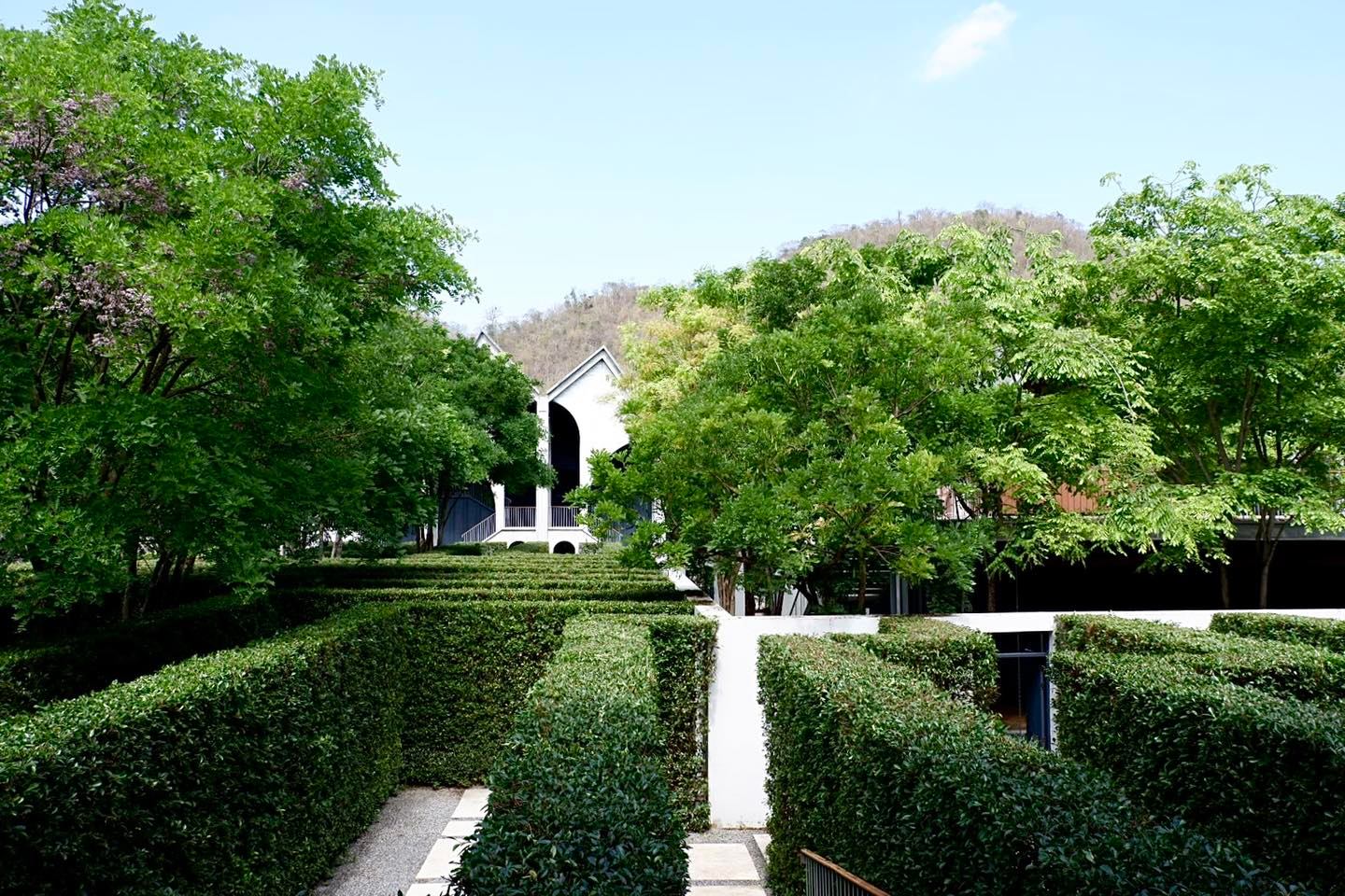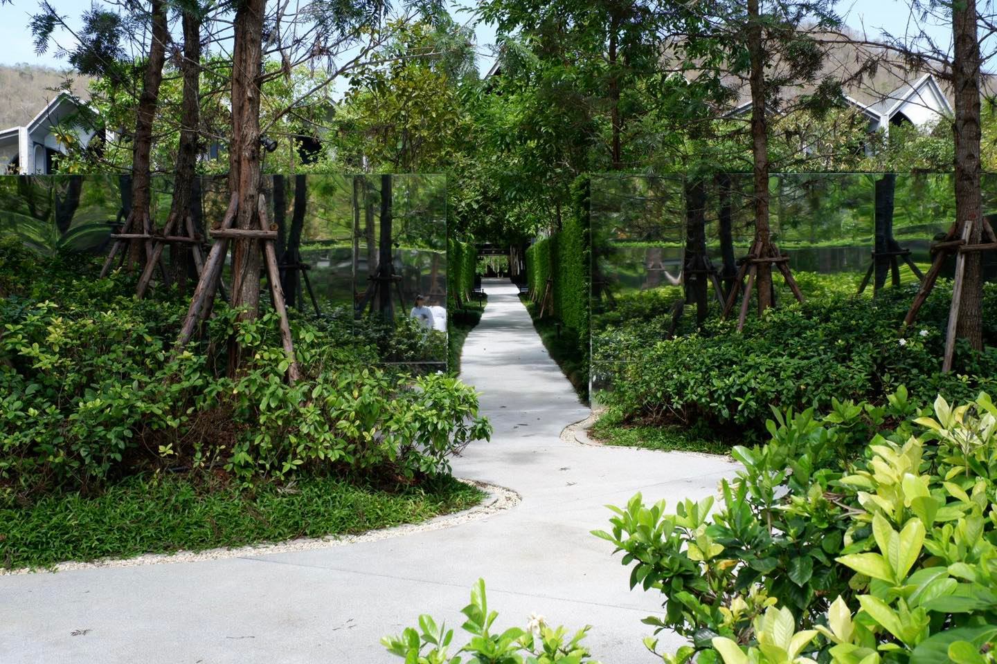 พื้นที่เป็นตอนลึกเข้าไป ห้องพักมีหลายโซนหลายแบบ ห้องอาหาร และสระน้ำจะอยู่ข้างในสุด