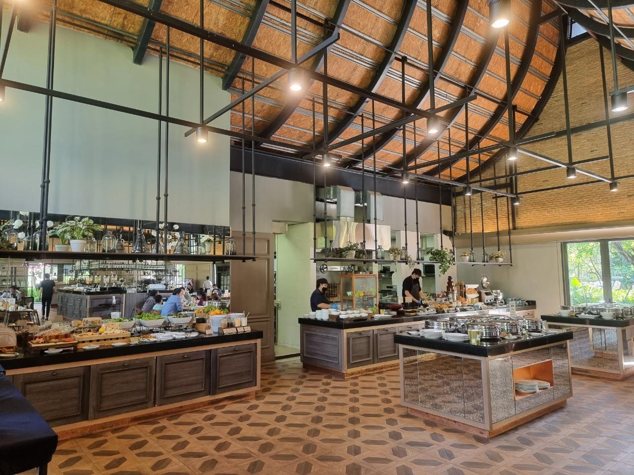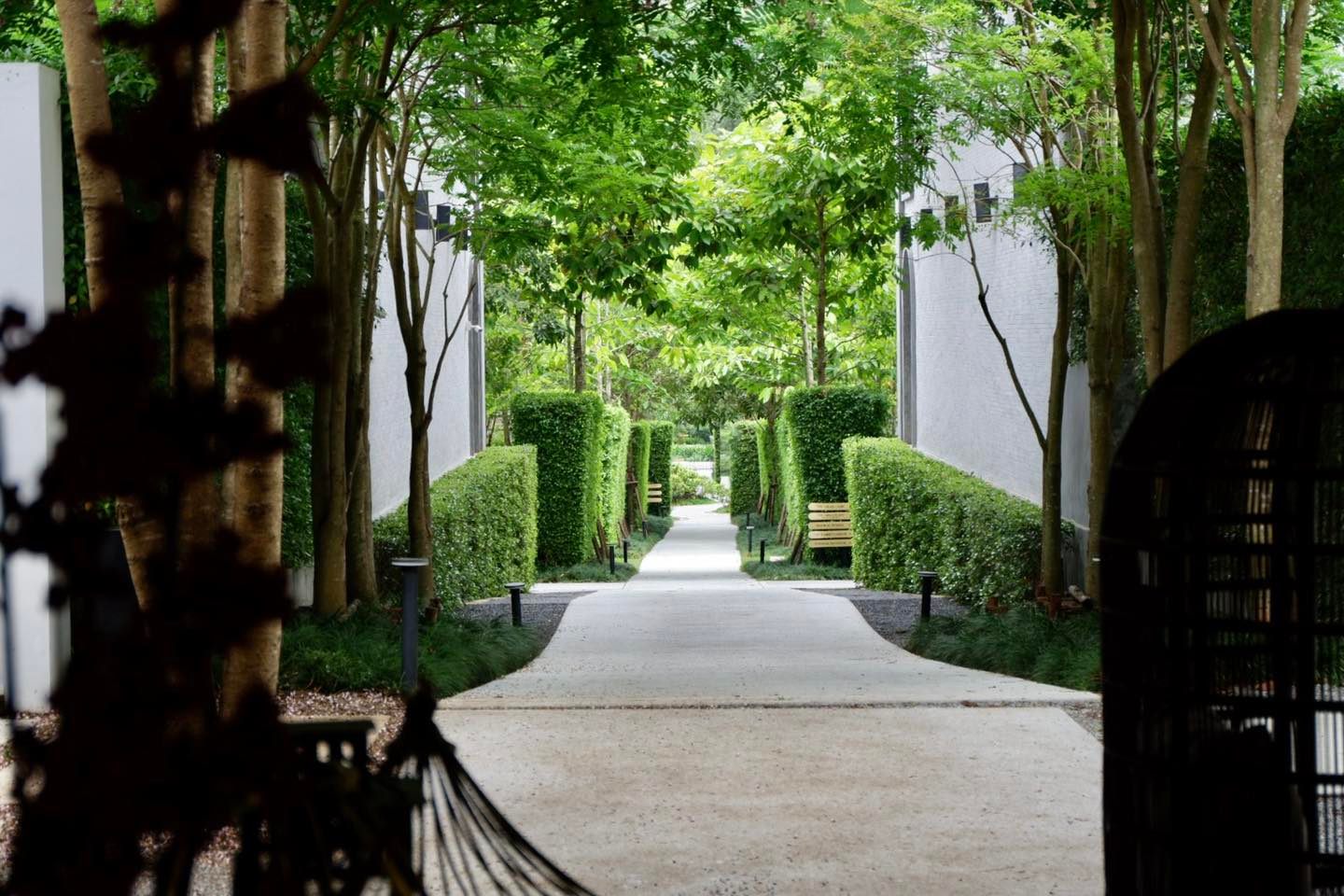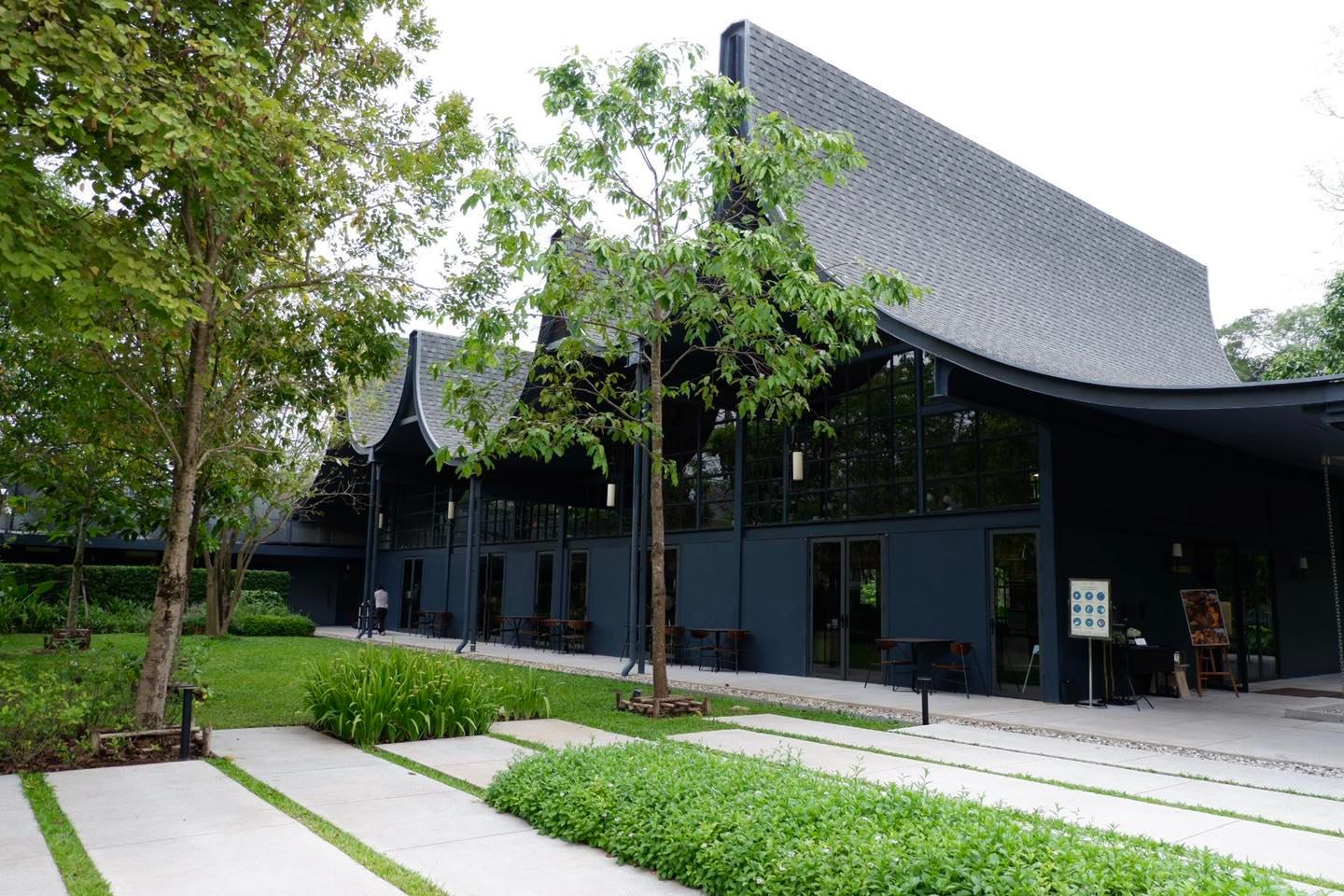 พื้นที่เป็นตอนลึกเข้าไป ห้องพักมีหลายโซนหลายแบบ ห้องอาหาร และสระน้ำจะอยู่ข้างในสุด
