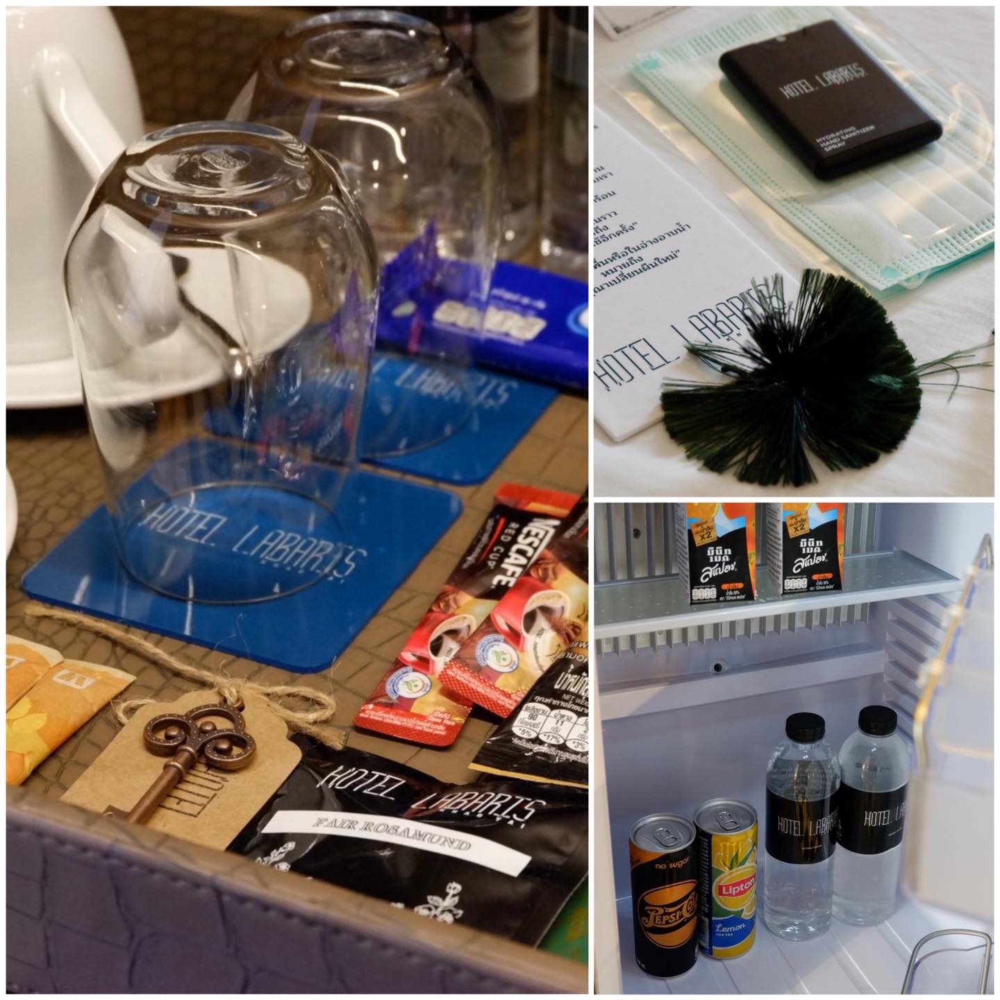 Hotel Labaris Khao Yai อยู่ติดถนนใหญ่ หาไม่ยาก ตื่นตาตื่นใจตั้งแต่เลี้ยวรถเข้า ความต่างๆ ของงานตกแต่งเข้า Theme ไปหมด Welcome Drink เก๋และอร่อย เหมือนเราอยู่ในโลก Fairy Tale เบาๆ ทั้งอาคาร ทางเดิน รูปปั้น สวนต้นไม้ สระว่ายน้ำยังเป็นลำธารในป่าเลยยยยย