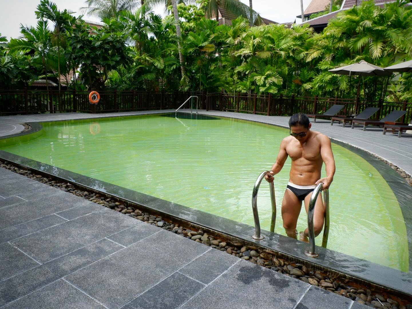 เกาะสมุยมีโรงแรมที่สระว่ายน้ำสวยๆ มากมาย แต่ที่นี่นั้น มี 7 สระ7 สี มณี 7 แส๊งงงงง!!! InterContinental Koh Samui Resort ด้วยความกว้าง และสูงชันของพื้นที่ นางจึงกระจายสระไว้หลายๆ จุด เพื่อความสะดวกของลูกค้า นางมี 7 สระ 7 โลเคชั่นจริงๆ แต่ไม่ถึง 7 สีนะ และนี่แหละ คือแคมเปญของเรา! ส้ม แดง น้ำเงิน เหลือง ไล่ลำดับชั้นขึ้นไปเรื่อยๆ เดินได้มีป้ายบอก แต่อาจจะเหนื่อยนิดนึงสระทั้ง 4 นี้ ไม่มีห้องน้ำนะฮะ เตรียมตัวให้พร้อมก่อนออกเดินทัวร์