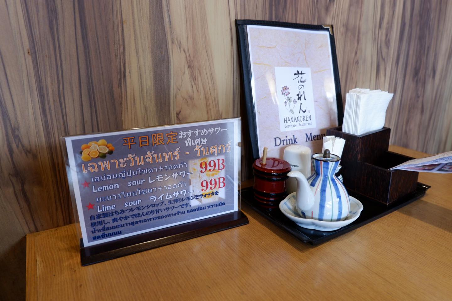 ที่นี่มีร้านอาหารญี่ปุ่นมากมายหลายแนว ครั้งนี้ขอลองร้านนี้ละกัน ได้ยินว่าเจ้าของเป็นคนญี่ปุ่นน่ะ ร้าน HANANOREN บรรยากาศญี่ปุ๊นญี่ปุ่น ตกแต่งไม้ๆ มีป้ายต่างๆ อาหารก็มีหลายแบบ รสชาติความสดถือว่าดี ราคาโอเคน่ะ มีลูกค้าเป็นคนญี่ปุ่นหลายโต๊ะอยู่