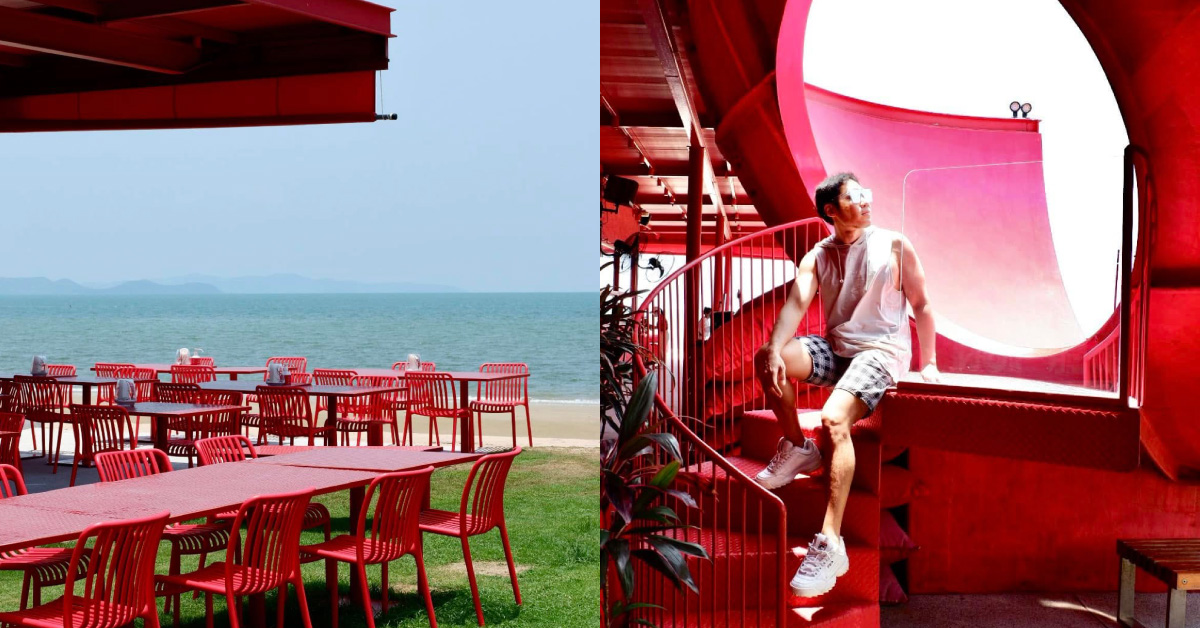 UNDER the SUN ร้านสีแดงสดสะใจ ตัดกับลานหญ้าและทะเล