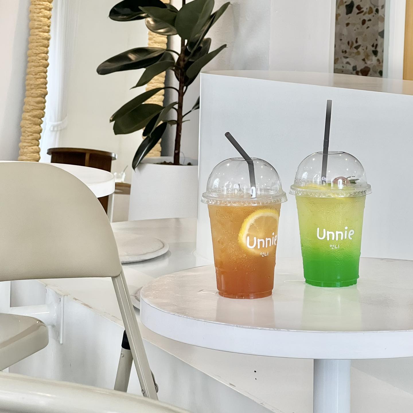 สภาพโดนลากมาคาเฟ่1 Unnie 언니 Pattaya โอ้โห้ร้านเล็กๆ แต่มุมถ่ายรูปจะเยอะไปไหน Unnie เป็นคำเกาหลีสำหรับผู้หญิงใช้เรียก พี่สาว นั้นเอง ร้านเหมือนจะเป็นใต้ตึกแถว ตกแต่งได้สวย แบบเกาหลีพี่สาวมากๆ เรียบๆ ละมุนๆ ทุกมุมเป็นมุมถ่ายรูปหมดทั้งในร้านรอบๆ ร้าน ฝั่งตรงข้ามร้าน ถ่ายตรงทางม้าลาย มีรถเข้าออกเรื่อยๆ ระวังกันด้วยนะ
