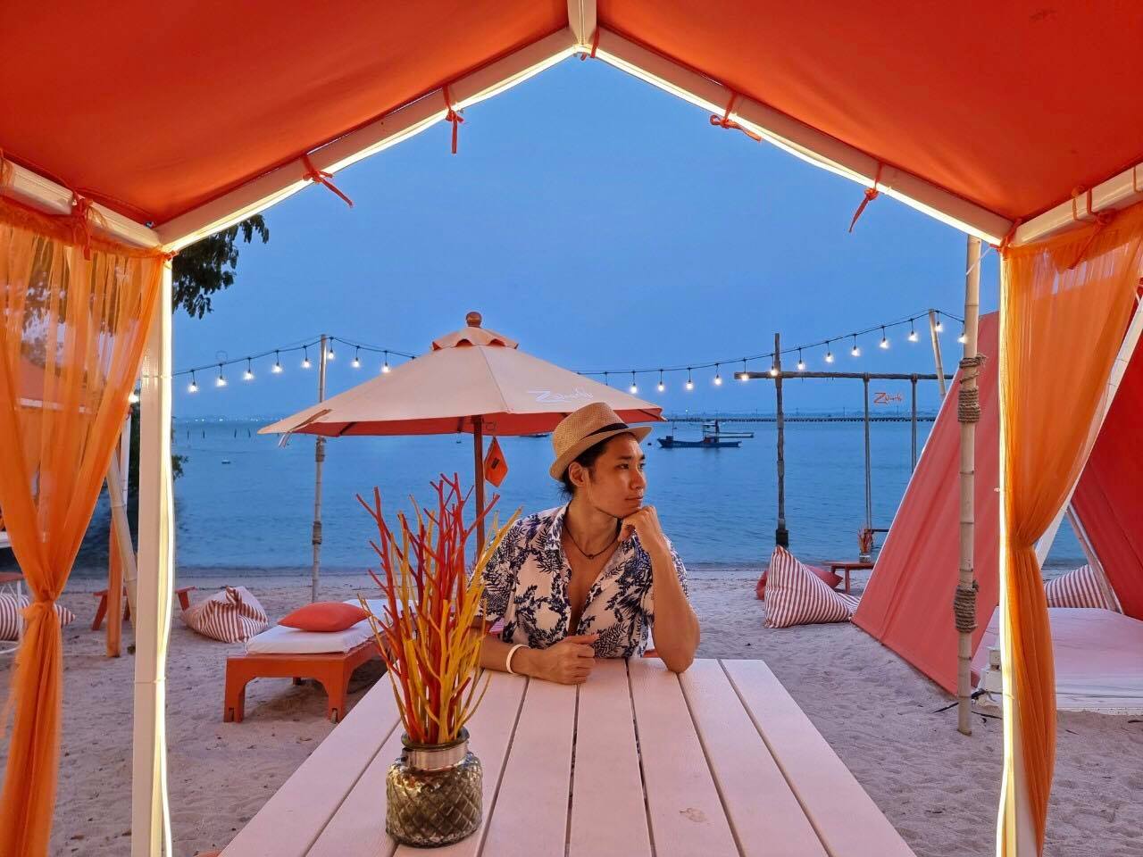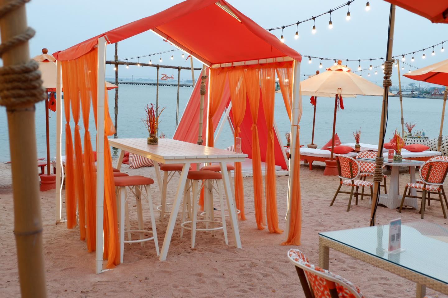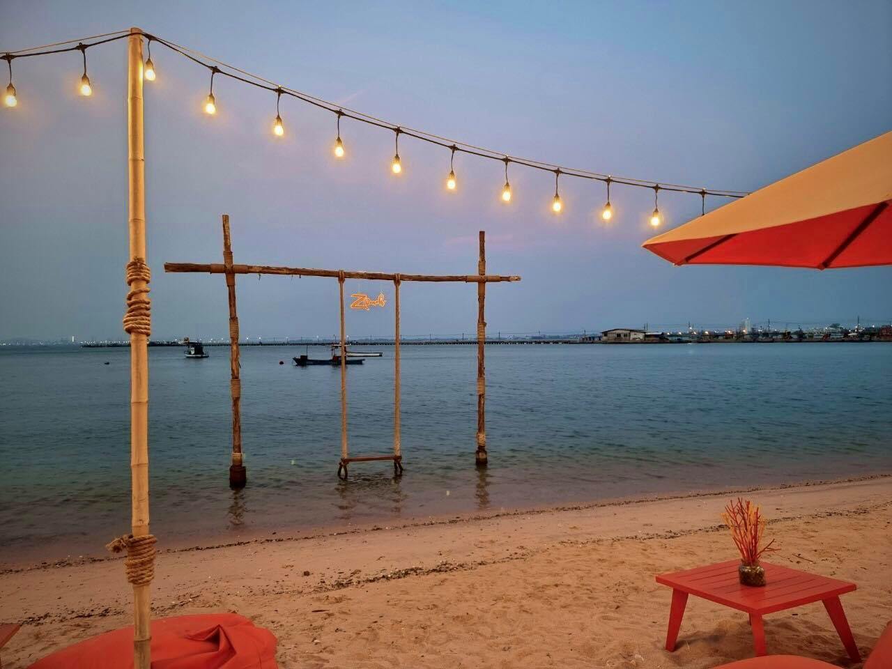 เพียงสิ้นแสงตะวัน จากคาเฟ่ชิวๆเปลี่ยนเป็นอีกอารมณ์ ฟรุ้งฟริ้ง วิบวับ ไฉไล เซอร์ไพรส์กับการจัดไฟ ได้รูปเก๋มาก ZBeach คาเฟ่สีส้มสดใสแปลกตา บนชายหาดส่วนตัว พร้อมโต๊ะที่นั่งที่นอน สารพัดแบบเท่าที่เราจะนึกออกบนโลกนี้ จนเรานั่งติดอยู่กะโต๊ะตัวเองไม่ได้ แนะนำสำหรับใครจะมา กินข้าว พักผ่อน นั่งชิว มาซัก 4 โมงเย็นครับ บรรยากาศดี ลมเอื่อย สงบ สบายๆ