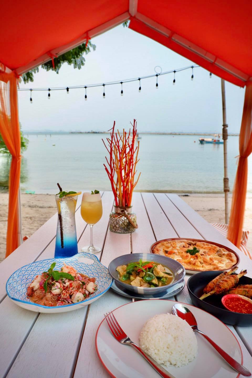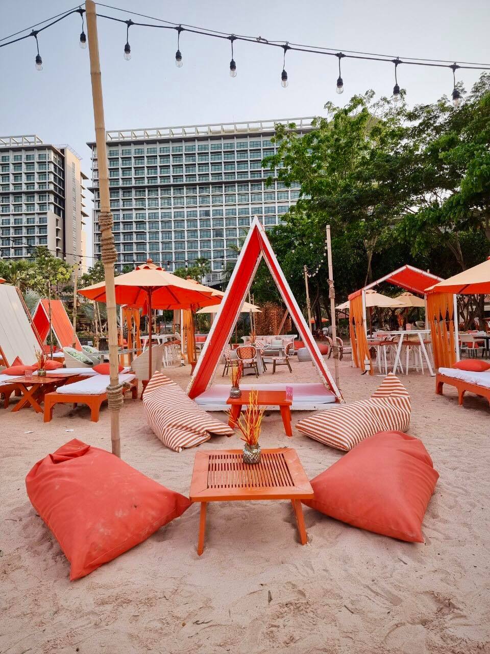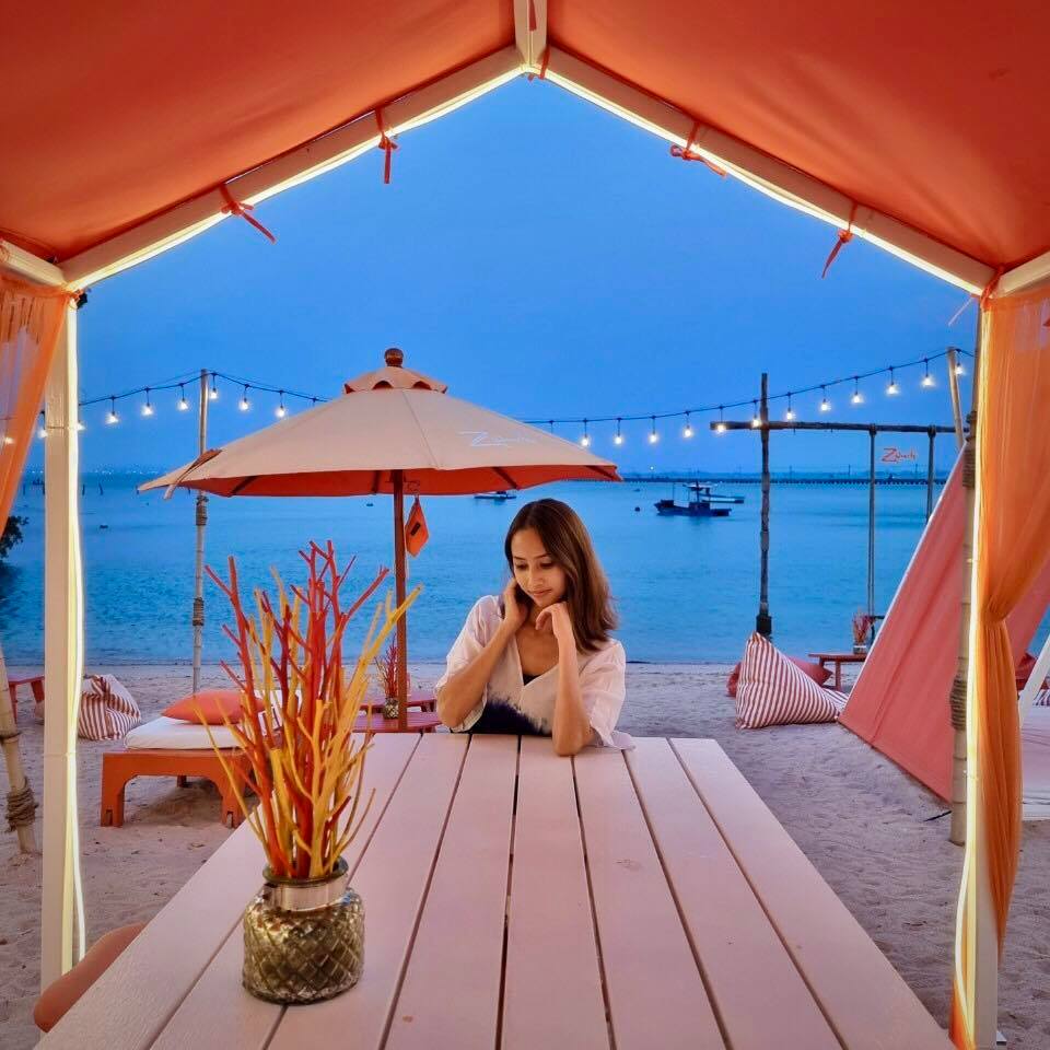 เพียงสิ้นแสงตะวัน จากคาเฟ่ชิวๆเปลี่ยนเป็นอีกอารมณ์ ฟรุ้งฟริ้ง วิบวับ ไฉไล เซอร์ไพรส์กับการจัดไฟ ได้รูปเก๋มาก ZBeach คาเฟ่สีส้มสดใสแปลกตา บนชายหาดส่วนตัว พร้อมโต๊ะที่นั่งที่นอน สารพัดแบบเท่าที่เราจะนึกออกบนโลกนี้ จนเรานั่งติดอยู่กะโต๊ะตัวเองไม่ได้ แนะนำสำหรับใครจะมา กินข้าว พักผ่อน นั่งชิว มาซัก 4 โมงเย็นครับ บรรยากาศดี ลมเอื่อย สงบ สบายๆ